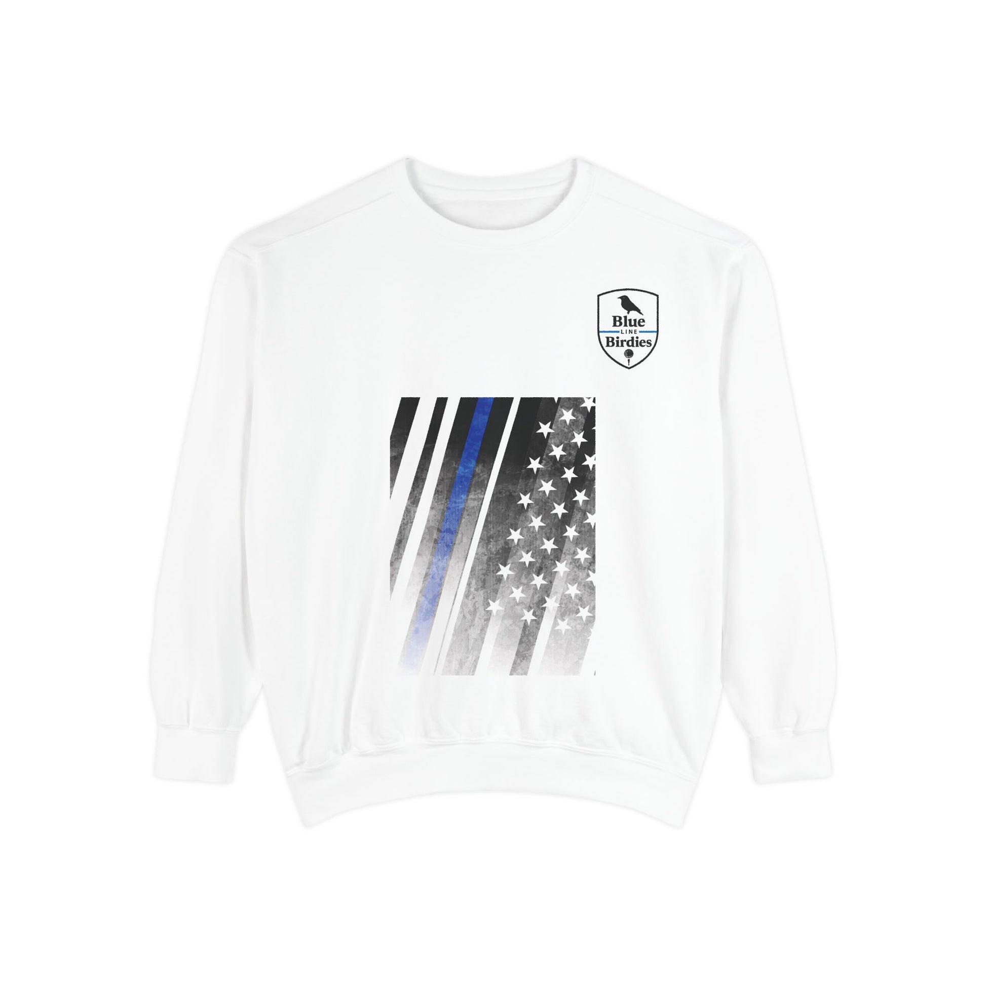 Unisex Garment-Dyed Sweatshirt with Blue Line Birdies Design, Cozy Casual Wear, Perfect Gift for Golfers!!